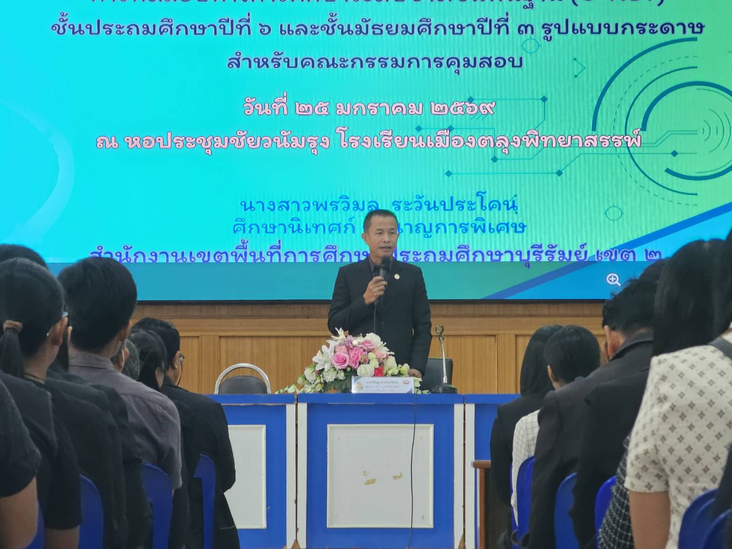 ✳️ เวลา 13.00 น. วันจันทร์ที่ 26 มกราคม 2569 นายวิศิษฐ สายจันทร์หอม ผอ.สพป.บุรีรัมย์ เขต 2 มอบหมายให้ นายสาคร แขนรัมย์ ผอ.กลุ่มนิเทศติดตามและประเมินผลการจัดการศึกษา เป็นประธานเปิดการประชุมและบรรยายพิเศษ การประชุมคณะกรรมการสนามสอบ ในการเตรียมความพร้อมการทดสอบทางการศึกษาระดับชาติขั้นพื้นฐาน (O-NET) โดย นางสาวพรวิมล ระวันประโคน ศึกษานิเทศก์ชำนาญการพิเศษ หัวหน้ากลุ่มงานส่งเสริมและพัฒนาการวัดและประเมินผลการศึกษา ผู้รับผิดชอบโครงการ เป็นผู้กล่าวรายงาน และชี้แจงภารกิจคณะกรรมการระดับสนามสอบฯ